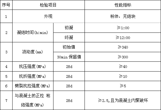 補縫專(zhuān)用漿料是一種以高強度水泥、聚羧酸類(lèi)超塑化劑、多元礦物質(zhì)材料為主要改性組分的水泥基灌漿材料,具有流動(dòng)性好、微膨脹、有一定韌性、與混凝土粘結力強、防腐耐久的特點(diǎn),適用于混凝土結構裂縫寬度大于3mm以上裂縫的灌注修補及外包鋼加固等。