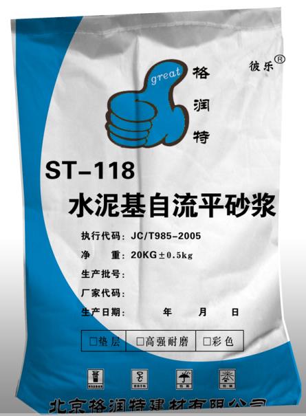 外觀(guān): 自由粉體狀   色澤: 灰色、綠色、紅色或其它顏色等   粘結料: 普硅水泥、高鋁水泥、硅酸鹽水泥等   附加劑: 多種表面活性助劑及分散乳膠粉   水料比: 5/25kg     室內民用自流平   干基密度: 1.5公斤/